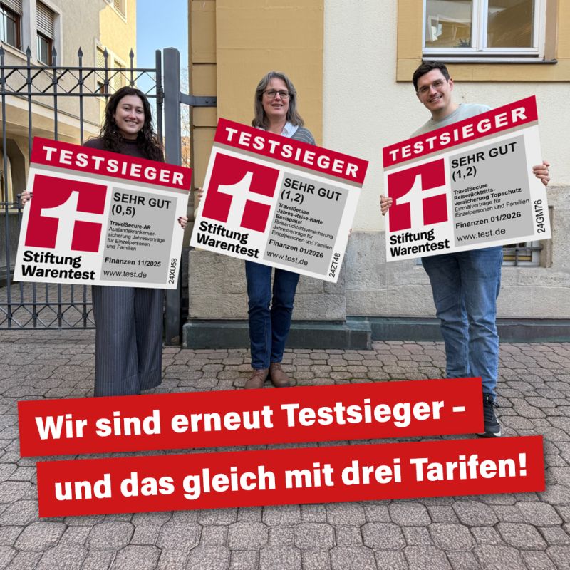 Wir haben erfreuliche Neuigkeiten: Unsere Auslandsreisekrankenversicherung für Langzeitaufenthalte wurde von der renommierten Stiftung Warentest mit der Bestnote »SEHR GUT« ausgezeichnet. Insgesamt wurden 82 Auslandsreisekrankenversicherungen getestet und wir sind stolz darauf, zu den Besten zu gehören.